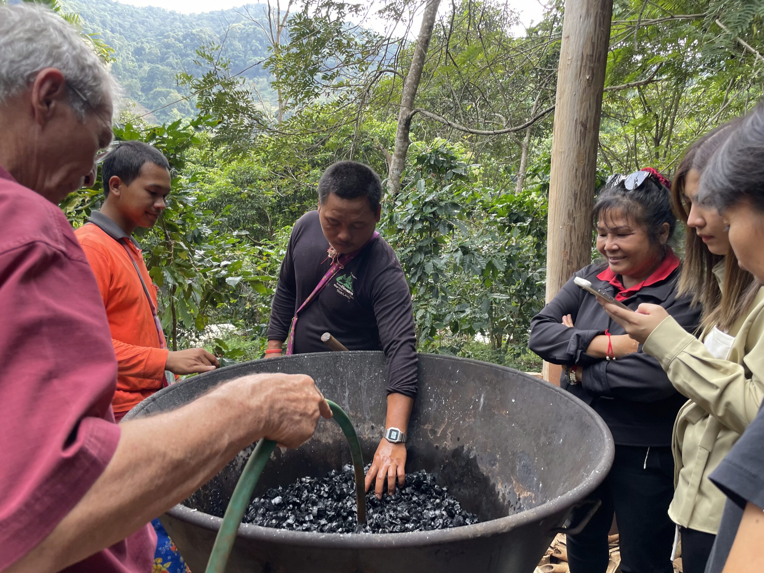 The biochar produced in the project has been applied for soil improvement at the coffee plantation during the coffee cultivation cycle since June 2025. This marked the start of actual long-term carbon storage in the soil of the Suan Lahu coffee plantation.
